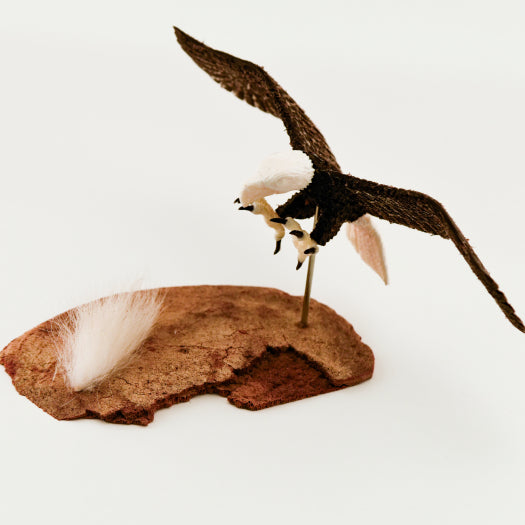 Bird of Prey Ivory Sculpture, made of baleen, walrus ivory, and whalebone. Created by Alaska Native Tlingit/Haida artist Robin Fields Sr. from Craig, Alaska.