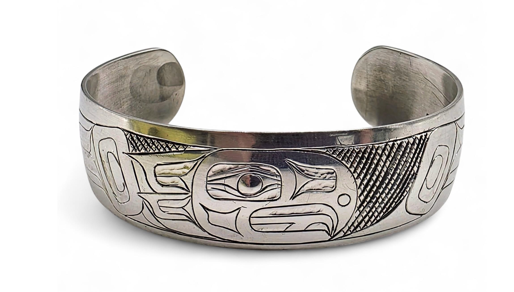 All cuffs are made with sterling silver or copper. Featuring formline eagle design. Created by Alaska Native Tlingit Brian Chilton from Juneau, AK.