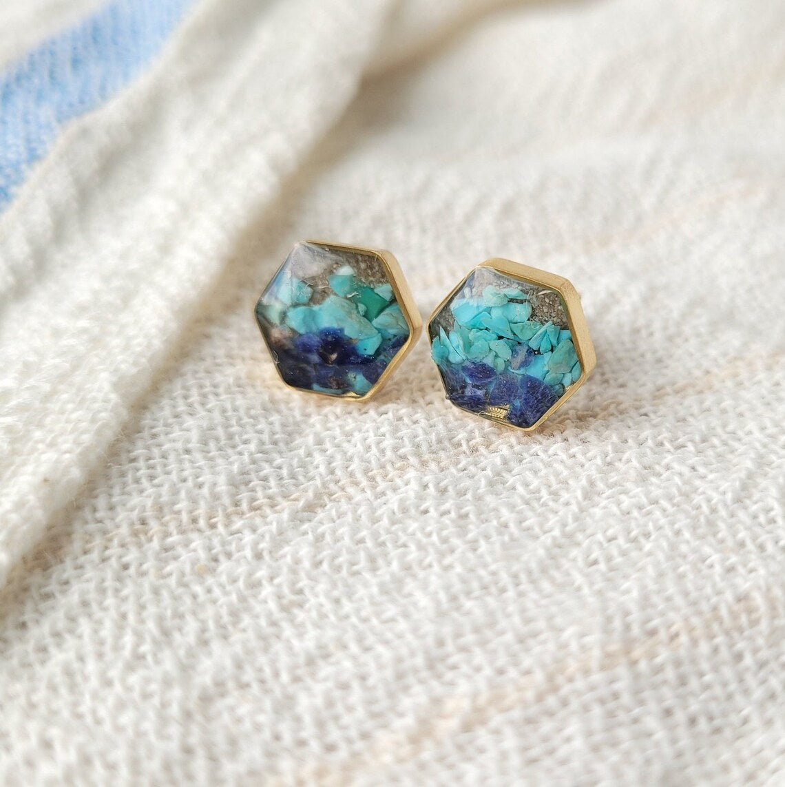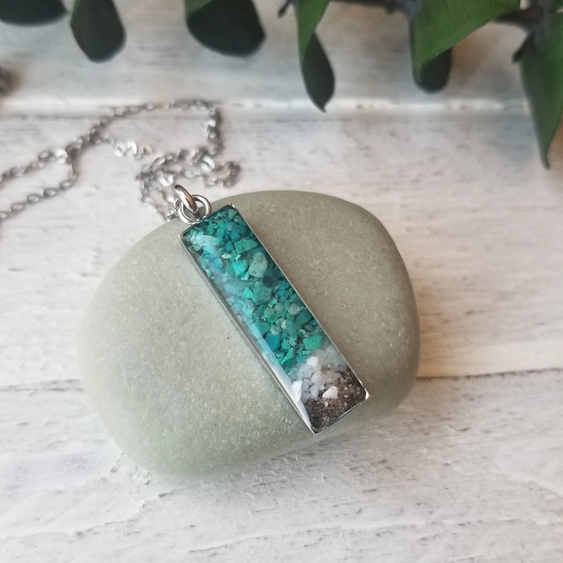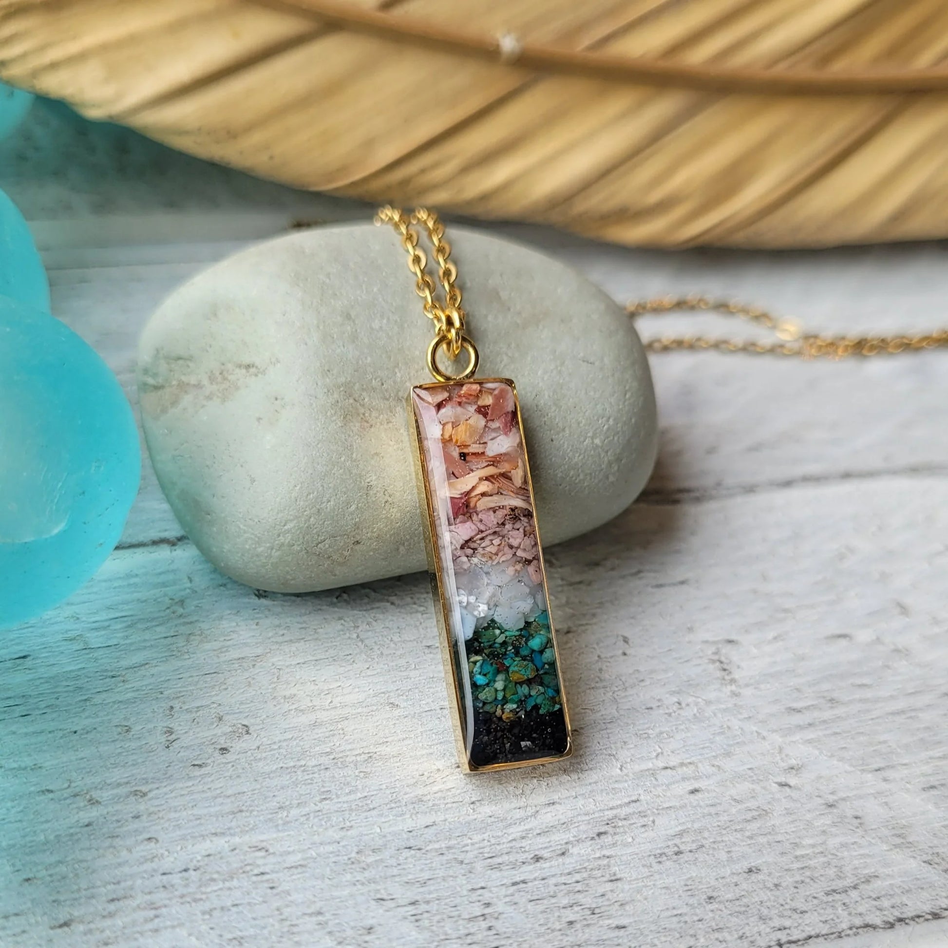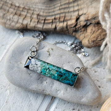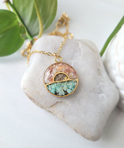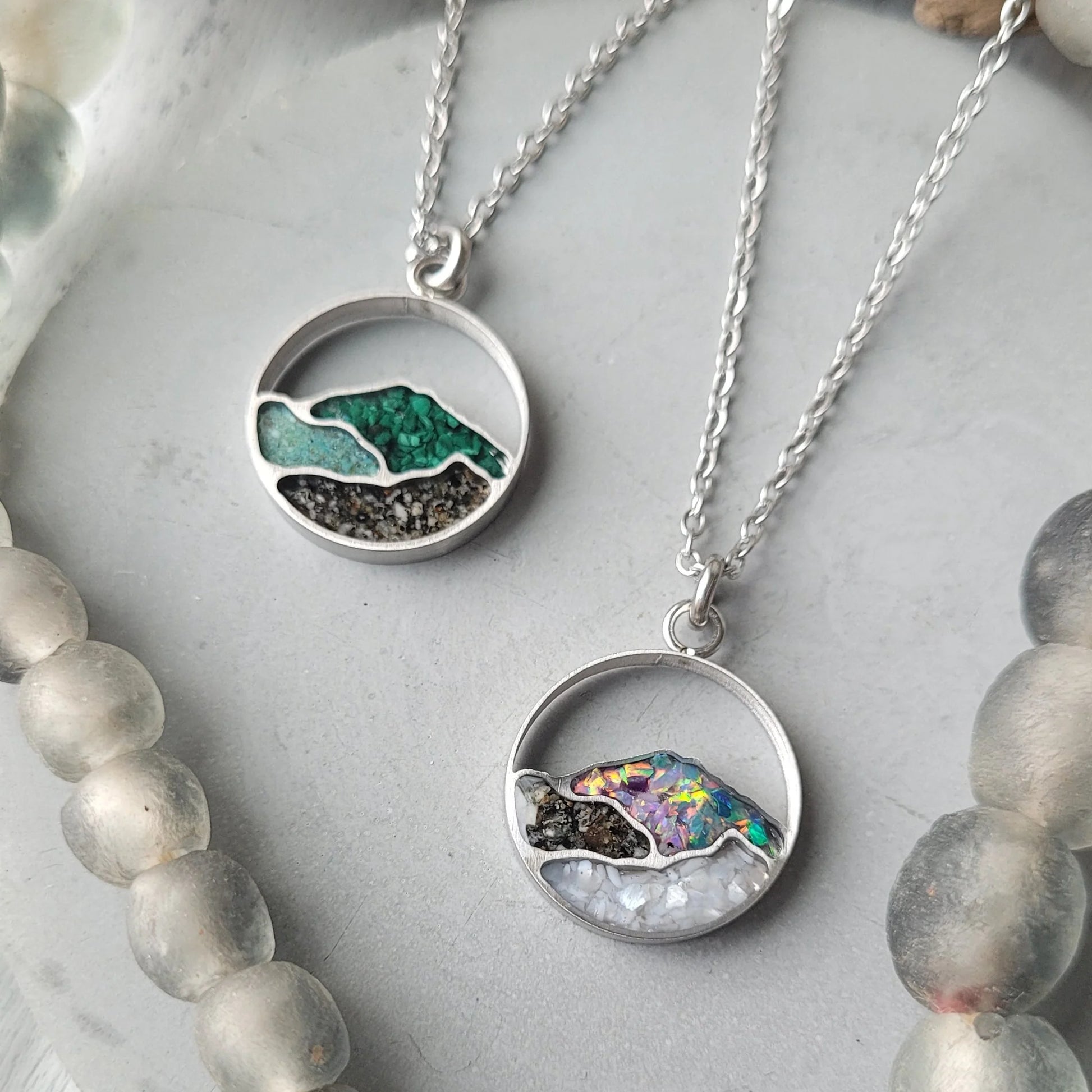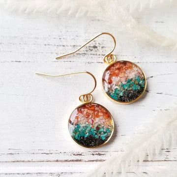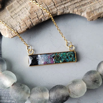 Here & There presents an exceptional collection of jewelry crafted from authentic Alaska sand and glacier silt, thoughtfully mixed with gemstones, shells, and other natural minerals. Jessie, the talented creator behind the line, journeys across Alaska with her family to personally gather these rare elements. Each piece showcases the distinctive colors and textures of Alaska’s landscapes, resulting in truly unique treasures. Carry a meaningful keepsake that connects you with Alaska’s rugged beauty and inspiring spirit wherever you go. Please note, colors vary with each handmade piece.